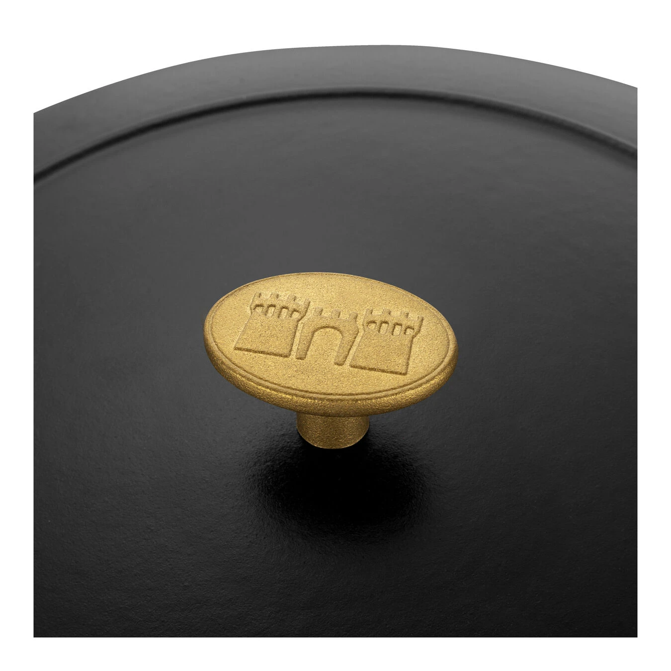 Entworfen wurde der Bräter vom Mailänder Design-Team Matteo Thun & Antonio Rodriguez. Er überzeugt mit ihrem attraktiven Design, der intensiven schwarzen Farbe sowie dem mattgoldenen Knauf mit BALLARINI Logo.