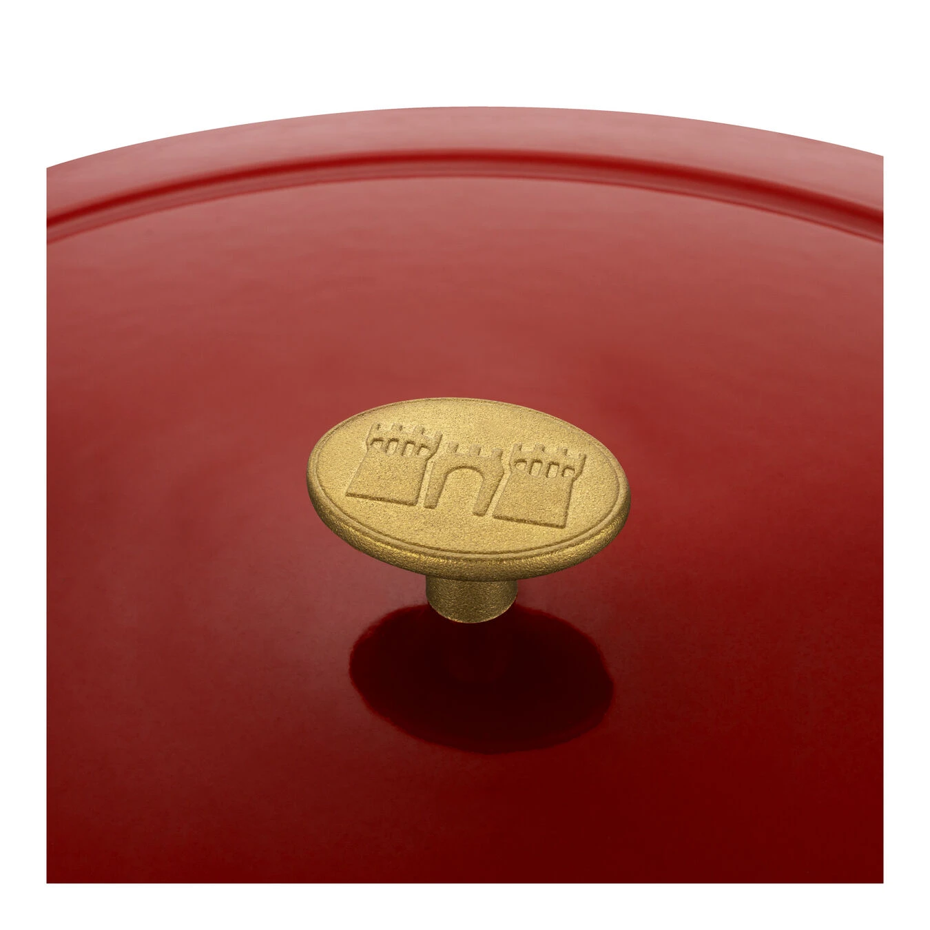 Entworfen wurde der Induktionsbräter von den Mailänder Designern Matteo Thun & Antonio Rodriguez. Er begeistert mit seinem puristischen Design, der intensiven roten Farbe sowie dem mattgoldenen Knauf mit geprägtem BALLARINI Logo.