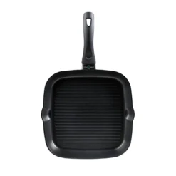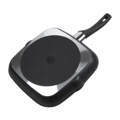 Mit geschmackvollem Fleisch und Fisch aus der Rialto Grillpfanne von BALLARINI in geschmiedeter Qualität in schwerer Ausführung verzaubern Sie sich und Ihre Lieben. Diese Pfanne ist mit der 3-fachen KERAVIS Antihaftversiegelung ausgestattet, sodass Kurzgebratenes sich auch ohne die Zugabe von Öl und Fett leicht vom Pfannenboden löst. Zudem verleiht ein traditionelles Rillenprofil dem Bratgut die typische Optik – auch das Auge isst bekanntlich mit! Die Antihaftbeschichtung auf der Innenseite ist in ansprechendem Schwarz gehalten. Auch die Pulverbeschichtung auf der Außenseite verfügt über eine dekorative, traditionelle Gussoptik. Durch die Größe von 28 cm eignet sich das Modell auch für die Bewirtung von Gästen. Auch der schwarze, ergonomisch geformte Kunststoffstiel mit praktischem Thermopoint überzeugt. Durch einen Farbwechsel von Grün auf Rot zeigt der Thermopoint zwischen Pfanne und Stiel die optimale Brattemperatur an. Ist diese erreicht, kann die Energiezufuhr gedrosselt werden. Nach dem Erkalten erscheint der Punkt wieder in Grün – nun kann die Pfanne gefahrlos gesäubert werden. Das Modell ist dank seiner widerstandsfähigen Antihaftversiegelung ideal für den täglichen Gebrauch und eignet sich für alle Herdarten außer Induktion. Die Reinigung kann mühelos im Geschirrspüler erfolgen. Mit der aus reinem Aluminium kaltgeschmiedeten Rialto Grillpfanne von BALLARINI wird Ihr Grillgut zart und saftig, genau das Richtige zum Verwöhnen Ihrer Gäste und der Familie.
