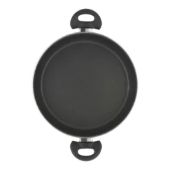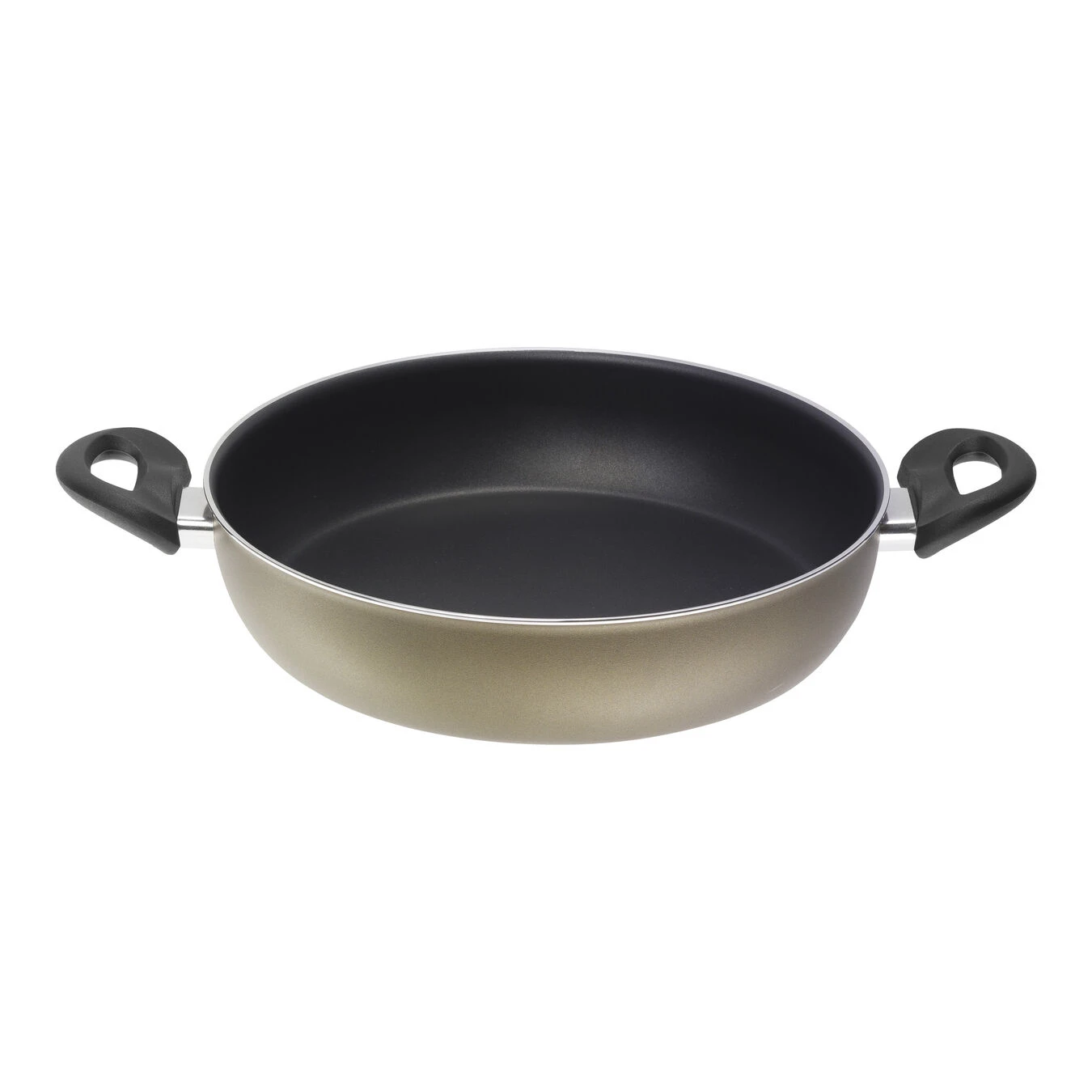 Mit der Servierpfanne der Serie Amalfi Gold von BALLARINI besitzen Sie ein hochwertiges Kochgeschirr, in dem Sie dank des Durchmessers vom 28 cm selbst größere Mengen Ihrer Mahlzeiten zubereiten und direkt auf den Tisch bringen können. Die hochwertige, 3-fache CORTAN ST3 Antihaftbeschichtung auf der Innenseite sorgt dafür, dass das Bratgut nicht am Pfannenboden anhaftet oder anbrennt – auch bei einem minimalen Einsatz zusätzlicher Fette oder Öle. Da die Antihaftversiegelung besonders widerstandsfähig ist, eignet sich die Pfanne für den häufigen Gebrauch. Auf der Außenseite ist sie mit einer Beschichtung in einem attraktiven, metallischen Goldton ausgestattet – ideal, um Ihre Kreationen stilvoll zu servieren. Zwei schwarze Kunststoffgriffe gewährleisten ein sicheres und bequemes Transportieren Ihrer Speisen. Denn diese sind durch Edelstahl-Flammschutz vor seitlich aufsteigender Hitze isoliert und bleiben daher angenehm kühl. Die Verschraubung aus Edelstahl verleiht den Griffen zusätzliche Stabilität. Die dickwandige Servierpfanne wurde aus Rein-Aluminium in geschmiedeter Qualität gefertigt. Ihr lackierter Boden zeigt das BALLARINI-Logo und ist für die Verwendung auf Gas-, Elektro- und Ceranherden konzipiert. Dabei wird die Hitze gleichmäßig bis an den Rand verteilt. In der Servierpfanne der Serie Amalfi Gold von BALLARINI bereiten Sie Ihre delikaten Speisen nicht nur gesund und schonend zu, Sie tafeln diese auch ansprechend und formvollendet auf.