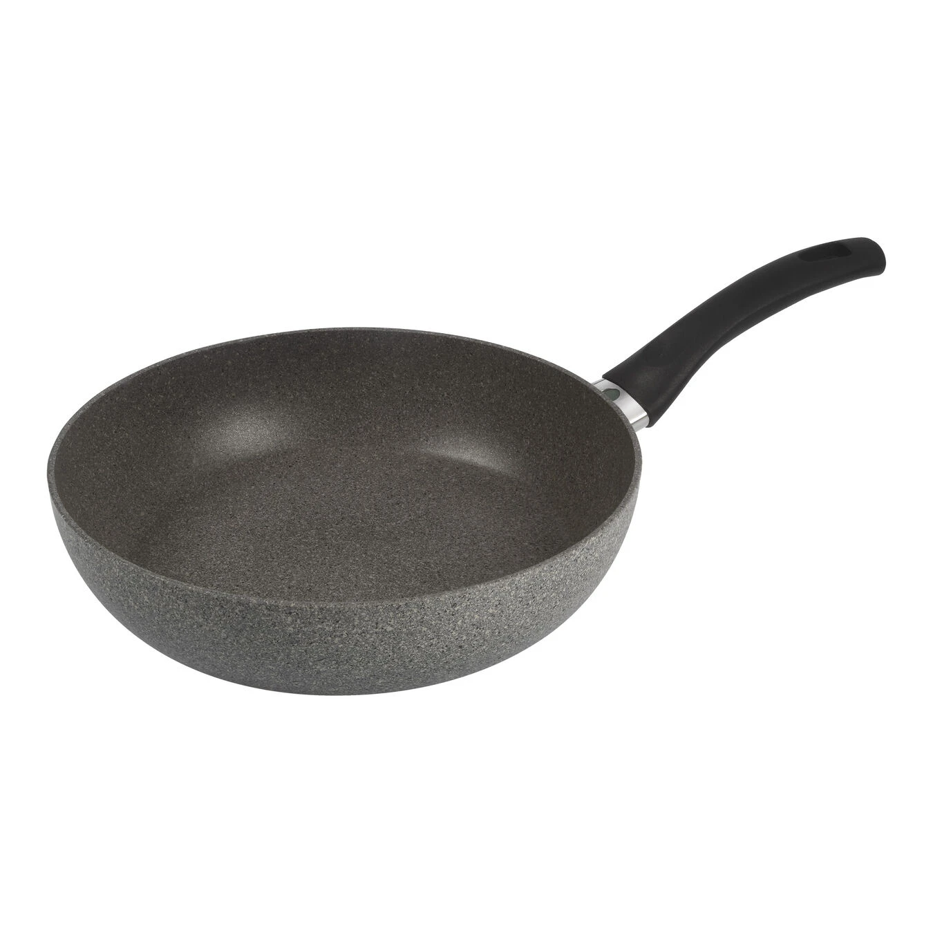 Eine Schmorpfanne istfür spezielle Garmethoden optimal. Typischerweise eine große, tiefe Pfanne, wahlweise auch mit Deckel erhältlich. Ein Unterschied zu „normalen“ Pfannen in der äußeren Form, der sich auch auf die möglichen Zubereitungsarten auswirken kann. Denn dieser Pfannen-Typ eignet sich sehr gut zum Schmoren, sprich für saftige und zarte Fleischgerichte, Gerichte mit großem Volumen (Braten zum Beispiel), viele Portionen. Genau für solche typischen Festessen ist der Aufbau der Schmorpfanne extra tief konzipiert. Für das Gelingen deiner Gerichte können unsere Schmorpfannen sehr gut Wärme speichern und gleichmäßig abgeben, womit dein Schmorgericht schonend und gleichmäßig erhitzt wird. Lange Pfannenstiele ermöglichen dir komfortable Handhabung deiner Schmorpfanne, auch beim Servieren. Ferrara Granitium Pfannen unserer Marke BALLARINI sind ein günstiger Einstieg in deine cucina italiana. Hier stimmt nicht nur der Preis, die leichtgewichtigen Aluminum-Pfannen ermöglichen dank ihrer Antihaftbeschichtung öl-armes Braten. Hinzu kommt der beliebte Thermopoint im Griff der Pfannen. Er sorgt dafür, dass du immer die richtige Brattemperatur beibehältst. Anbrennen sollte so eigentlich nichts mehr und du kochst außerdem energieeffizienter! BALLARINI Ferrara Granitium ist also ein stimmiges Gesamtpaket, mit dem du sicherlich viele deiner Lieblingsspeisen zubereiten wirst. Aluminum-Kochgeschirr mit einem Edelstahlgriff ist bis 230°C hitzebeständig, mit Kunststoffgriff bis 160°C. Der Einsatz von Aluminium in dieser Schmorpfanne hoch gewährleistet eine sehr gute, schnelle Wärmeleitung und energieeffiziente Wärmespeicherung. Lasse nach dem Kochen einfach die Spülmaschine die weitere Arbeit übernehmen, denn diese Schmorpfanne hoch ist spülmaschinengeeignet. Mit diesem Kochgeschirr kannst du vieles machen in deiner Küche: Es ist nämlich ofenfest. Da Kochgeschirr aus Aluminium nicht magnetisch ist, und deshalb nicht auf Induktion funktionieren würde, . Der innovative Induktionsboden dank kurzer Aufheizzeiten für eine sehr gute Energieeffizienz und gewährleistet eine hohe Stabilität deines BALLARINI Kochgeschirrs. Die Schmorpfanne hoch ist für Induktionsherde geeignet.