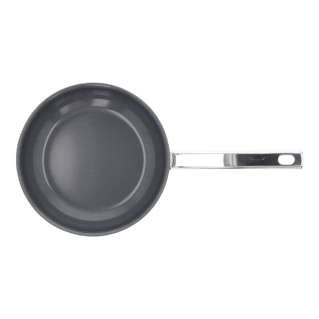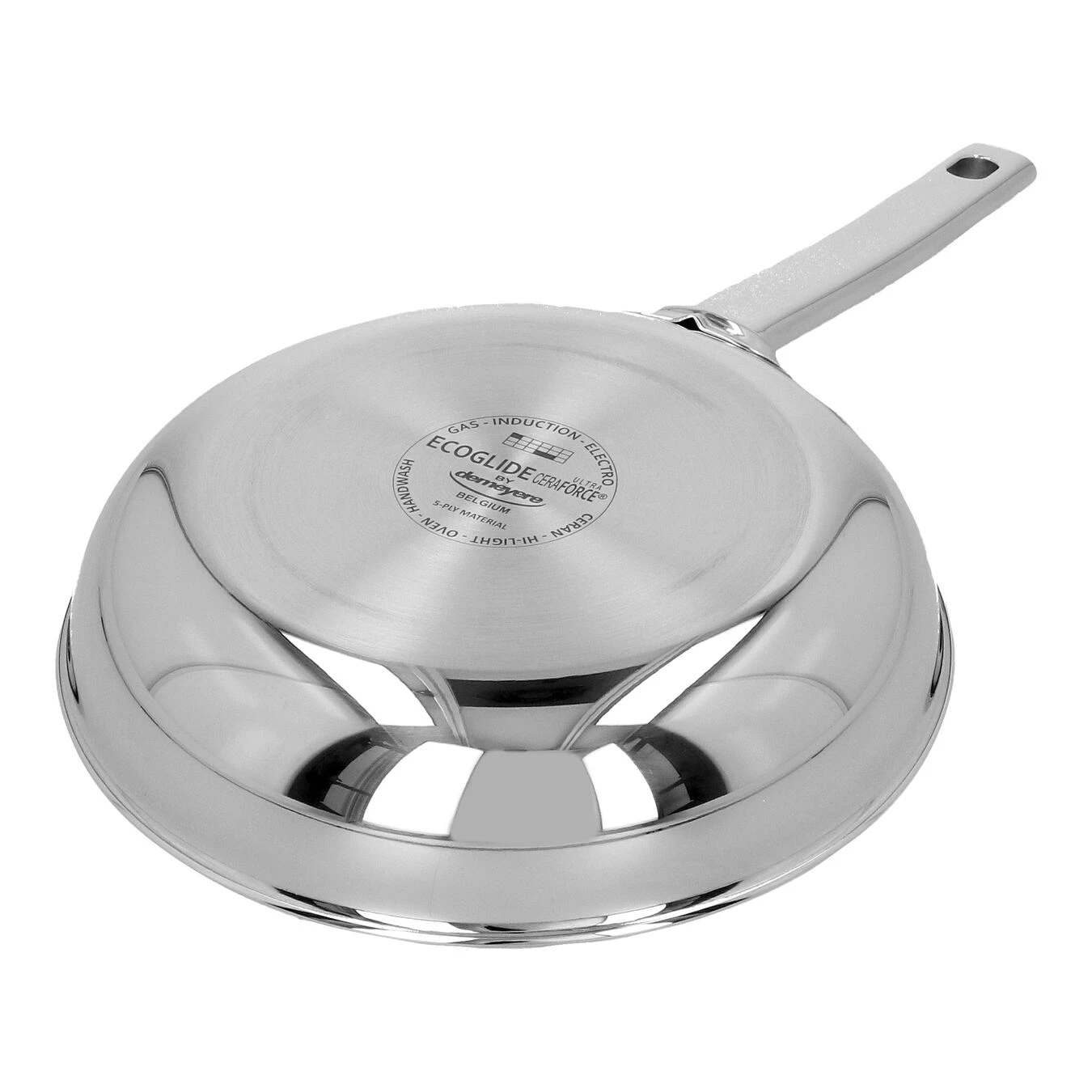 Egal ob saftiger Fisch, traditionelle Bratkartoffeln oder ein exotisches Pfannengericht: Für Gebratenes ist diese Pfanne der Reihe Ecoglide mit Ceraforce Ultra-Beschichtung aus dem Hause Demeyere eine mögliche Alternative. Die Bratpfanne mit 20 cm Durchmesser erleichtert Ihnen den Alltag in der Küche. Mit ihrem verschweißten Edelstahlgriff liegt die Ecoglide-Pfanne gut in der Hand und bleibt auf elektrischen Herden angenehm kühl. Die ausgeklügelten Antihafteigenschaften sorgen dafür, dass keine Essensreste am Pfannenboden kleben bleiben. Der 5-lagige Boden ermöglicht eine schnelle Wärmeverteilung über die gesamte Pfanne bis zum Rand. Konkret bedeutet dies, dass für eine gleichmäßige Hitzeverteilung gesorgt ist.