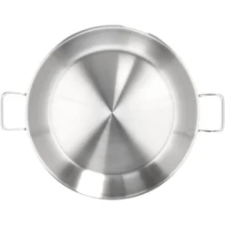 Mit dieser Paellapfanne von Demeyere können Sie das traditionelle Gericht aus Spanien leicht vorbereiten und Ihren Gästen eine kulinarische Freude bereiten. Das Bratgeschirr mit einem Durchmesser von 46 cm wurde für das typische Zubereitungsverfahren optimiert und trägt so zum Gelingen des mediterranen Gerichts bei. Die hochwertige Edelstahlpfanne punktet mit einem Boden aus fünf Schichten. Dadurch ist eine schnelle und gleichmäßige Wärmeverteilung bis zum Rand garantiert. Sie können in der großen Pfanne Paella für mehrere Personen vorbereiten und, wie in Spanien üblich, darin stilecht servieren. Dank der matt polierten Oberfläche und dem puristischen Design macht das Kochgeschirr selbst auf dem gedeckten Tisch eine gute Figur. Die Paella-Pfanne ist für alle Herdarten inklusive Induktion geeignet. Selbstverständlich spricht nichts dagegen, das Bratgeschirr auch für andere Gerichte oder Anlässe zu verwenden. Das spezielle Equipment kann Ihnen so zum Beispiel auch bei der Vorbereitung von Speisen für ein Buffet gute Dienste leisten. Die Pfanne von Demeyere sollte in Ihrer Küche nicht fehlen.