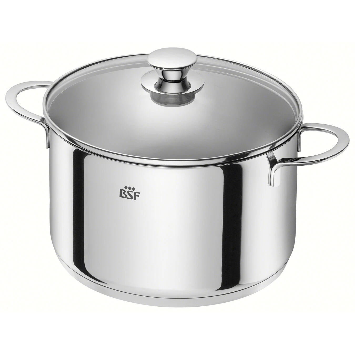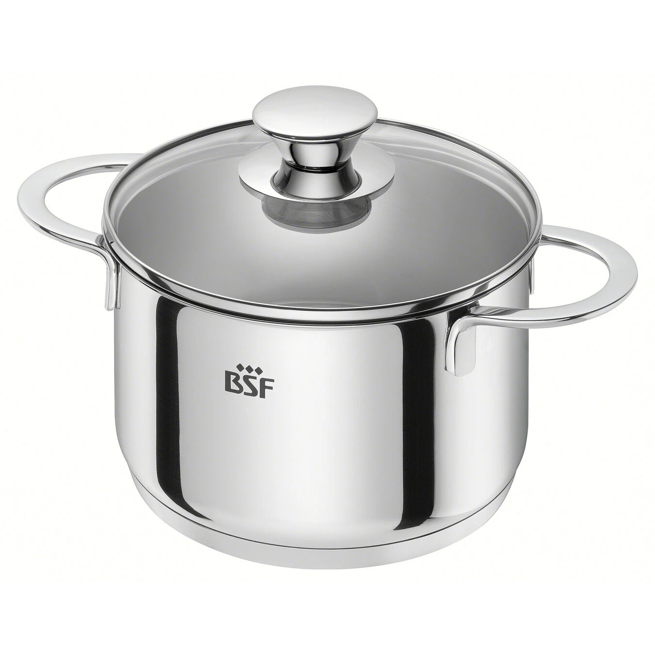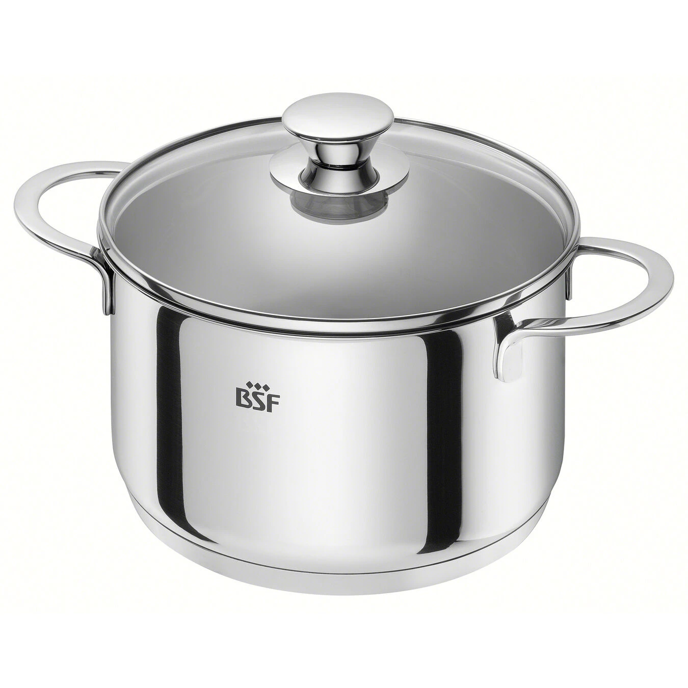 Das Kochgeschirrset von BSF können Sie auf jeder Kochplatte und sogar auf einem Induktionskochfeld verwenden. Mit ihm kochen Sie leicht komplette Menüs und behalten hierbei Ihr Essen durch die Glasdeckel immer im Blick.