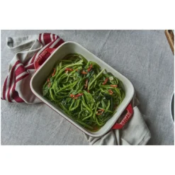 Mit der rechteckigen Auflaufform der Reihe Keramik in der Größe 20 cm x 16 cm gelingen Ihnen schmackhafte Aufläufe und viele andere Ofengerichte. Sie können die Speisen damit optimal zubereiten, um ihnen einen besonderen Geschmack zu verleihen. In der Farbe Kirschrot wirkt sie frisch und farbenfroh. Die Keramik verteilt die Wärme gleichmäßig und sorgt so für sehr gute Ergebnisse beim Backen. Außerdem fällt es Ihnen leicht, die Speisen von der Oberfläche zu lösen. Mit der Auflaufform von Staub machen Sie das Kochen zu einem wahren Vergnügen.