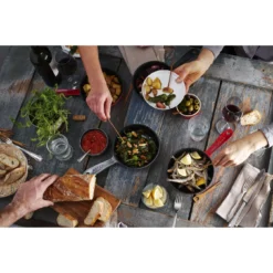 Mit der kleinen runden Pfanne von STAUB wird das Teilen zum Vergnügen. Tapas sind heutzutage sehr beliebt. Die kleinen Bratpfannen sind eine großartige Möglichkeit, sie auch zu Hause zu genießen und bieten Ihnen die Gelegenheit zu einer interessanten Abendaktivität.