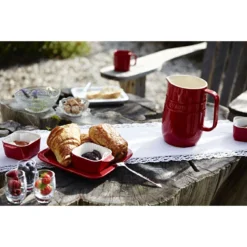 Die rechteckige Grillpfanne von Staub bietet einen authentischen Grill-Effekt durch ihren geriffelten Pfannenboden. Das Gargut liegt dadurch nur teilweise direkt auf und bleibt lecker und saftig. Überschüssiges Fett und Flüssigkeiten laufen in die Rillen, statt vom Gargut weiter aufgenommen zu werden. Das emaillierte Gusseisen nimmt die Hitze schnell auf und leitet sie stetig und gleichmäßig weiter. Auf diese Weise wird nach dem Anbraten auch ein schonendes Garen möglich. So bleiben Nährstoffe und Aromen gut erhalten. Die rechteckige Grillpfanne mit 2 Griffen ist 28 cm groß und in Schwarz gehalten. Mit Hilfe der zwei seitlichen, schmalen Griffe kann sie gut transportiert werden und nimmt auf dem Herd wenig Platz weg. Da die Pfanne auch in den heißen Backofen gestellt werden kann, lässt sie auch dort Raum für weiteres Gargut. Sie ist darüber hinaus für alle Herdarten geeignet, selbst auf Induktionsherden zeigt sie ihre hervorragenden Brateigenschaften. Gusseisen gilt von jeher als eines der bewährtesten Materialien für das Braten und Garen. Der Geschmack intensiviert sich durch den Garvorgang und die Speisen bleiben dank der sehr guten Hitzespeicherung lange warm. Da die Grillpfanne über ein klares Design verfügt, passt sie in die traditionelle genauso wie in die moderne Küche. Sie ist eine Inspiration, immer wieder neue Gerichte auszuprobieren und zu genießen.