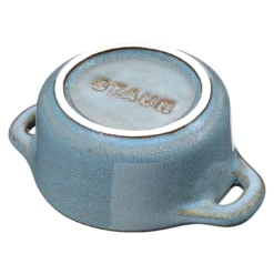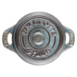 In der klassisch französischen Cocotte von STAUB servieren Sie Speisen stilvoll direkt am Tisch. Die Mini-Cocotte eignet sich für die Zubereitung von kleinen Portionen von Vorspeisen, Aufläufen und Desserts wie Küchlein mit geschmolzenem Kern oder gebackenen Cremes. Da sie über ein Volumen von 0,2 l verfügt, ist sie vor allem für die Zubereitung einer kleinen Portion geeignet. Die Mini-Cocotte ist aus Keramik gefertigt, einem Material, das für seine optimale Wärmeverteilung geschätzt wird. Wenn Sie Speisen darin mit geschlossenem Deckel servieren, bleiben die Speisen darin länger warm. Die Mini-Cocotte ist mit einer Glasur in Antiktürkis versehen, die der Farbe eine enorme Strahlkraft verleiht. So sorgen Sie beim Anrichten Ihrer Speisen für einen Farbtupfer auf dem Tisch und machen die gemeinsame Mahlzeit zu einem kulinarischen Erlebnis. Die emaillierte Oberfläche der Mini-Cocotte lässt sich zudem leicht und schonend reinigen. Sie können die Cocotte klassisch im Backofen oder in der Mikrowelle einsetzen. Da die Keramik auch Kälte gut speichert, eignet sich die Cocotte auch zum Servieren vorbereiteter und gekühlter Nachspeisen. Mit der antiktürkisen Mini-Cocotte aus der Serie Ceramic by STAUB nutzen Sie ein außergewöhnlich designtes Kochgefäß, das Sie zur Zubereitung und zum Servieren feiner Speisen sicher gern zur Hand nehmen.