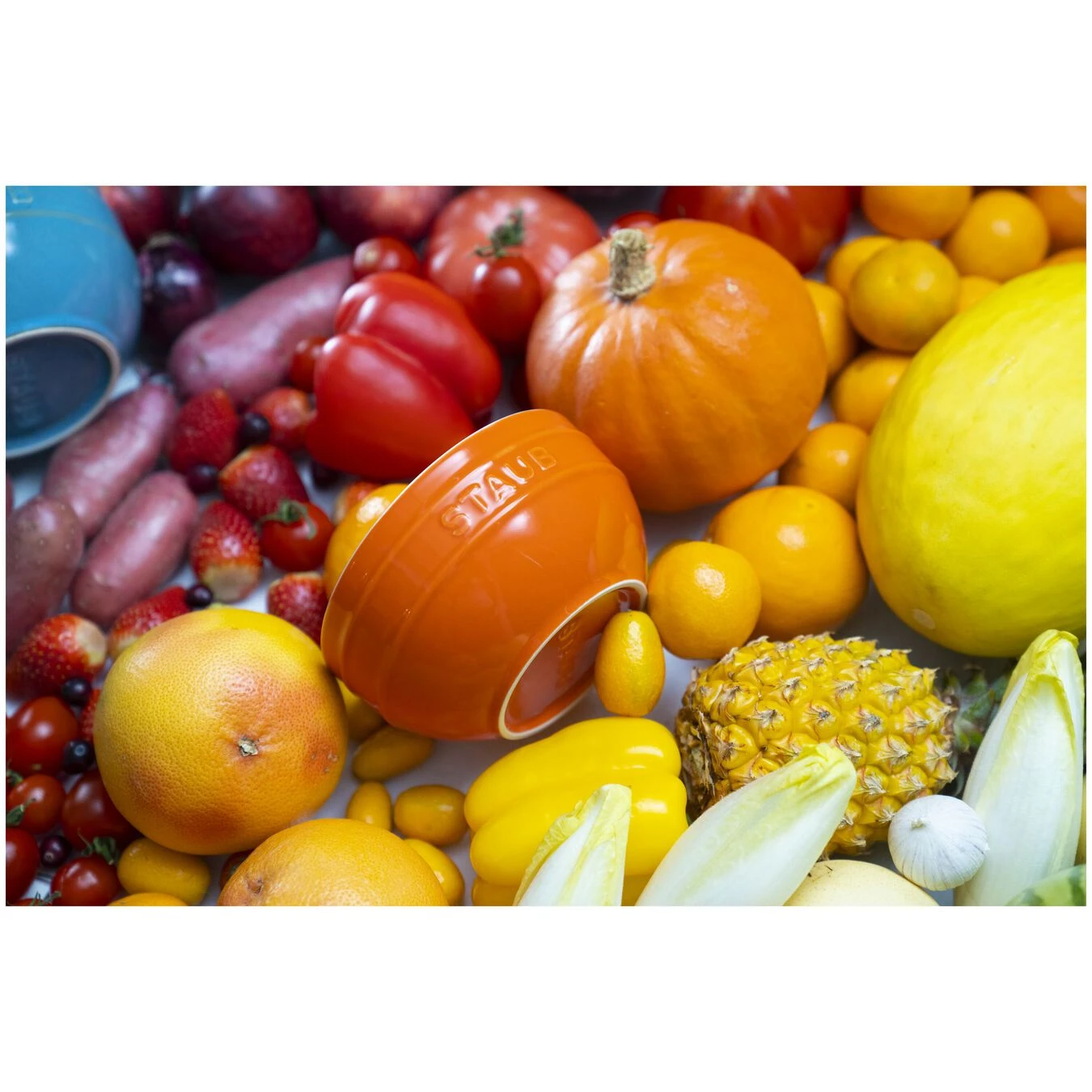 Das französische Savoir-vivre hält mit dem Keramikgeschirr von Staub Einzug in Ihr Zuhause. Die runde Rührschüssel aus der Serie Keramik hat einen Durchmesser von 12 cm und bewährt sich beim Vorbereiten von Speisen und Anrühren von Saucen ebenso wie beim stilvollen Servieren. Die Schüssel ist aus hochwertiger Keramik in Orange gefertigt. Diese ist pflegeleicht, kratz- und stoßfest sowie mikrowellen- und spülmaschinengeeignet. Mit der Rührschüssel von Staub bereiten Sie leckere Gerichte zu und servieren beispielsweise Salate auch ansprechend an der Tafel.