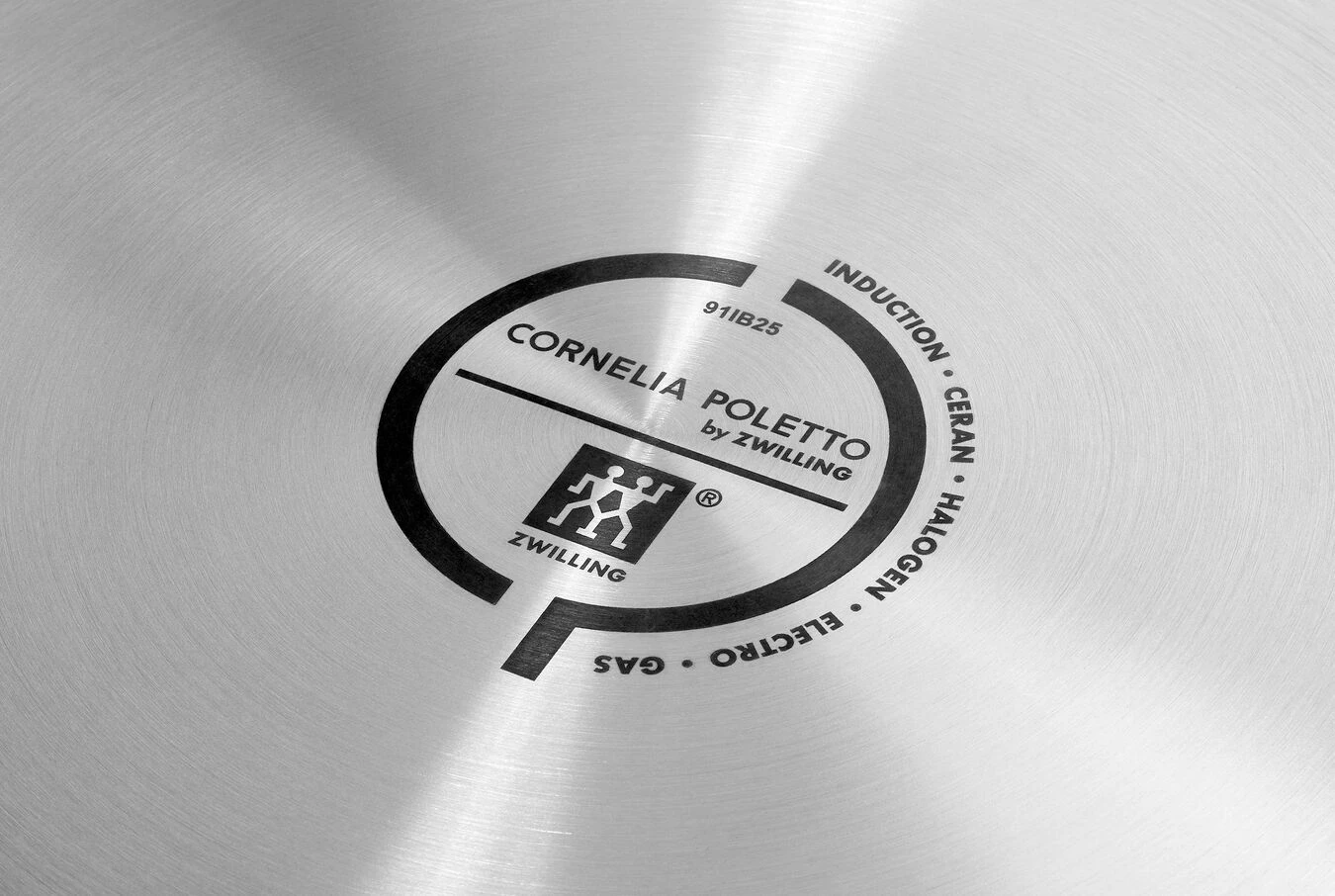 Die in diesem Set enthaltenen zwei Bratpfannen wurden in Zusammenarbeit mit Sternenköchin Cornelia Poletto entwickelt. Sie sind Allrounder Pfannen und eignen sich besonders gut zum schonenden Braten von Eierspeisen, Fisch, Gemüse, Fleisch und vielem mehr. Die Pfannen haben einen Durchmesser von 20 cm und 28 cm, somit finden sie in jeder Situation Verwendung. Dank des Sandwichbodens mit starkem Aluminiumkern und der 4-lagigen Duraslide Diamond Beschichtung, wird die Wärme optimal verteilt. Der hochwertige Gussgriff mit Silikonummantelung sorgt für eine leichte Handhabung und bleibt während des gesamten Kochvorgangs angenehm kühl. Die Cornelia Poletto-Pfannen unterstützen Sie bei allen kulinarischen Experimenten. Mit diesen praktischen Helfer von ZWILLING zaubern Sie Ihren Lieben großartige Pfannengerichte. Die Pfannen sind für jede Herdart inklusive Induktion geeignet und können bequem in der Spülmaschine gereinigt werden.