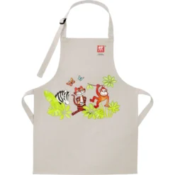 Sie verzaubert mit einem kindgerechten, verspielten Tier Motiv auf der Brust und überzeugt durch höchste Funktionalität. Die Kochschürze ist wie all unsere Küchentextilien aus Baumwolle. Für eine ideale Passform sorgen die seitlichen Bänder mit denen die Küchenschürze hinten zusammengebunden wird sowie die verstellbaren Bindebänder. So passt die Schürze kleinen und großen Kindern und es darf nach Herzenslust gekleckert werden. Schließlich sollen sich die Nachwuchs Köche ja voll und ganz auf das Kochen konzentrieren.
