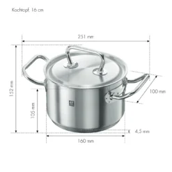 Der Kochtopf mit 2 l Fassungsvermögen eignet sich für die Zubereitung zahlreicher Gerichte wie beispielsweise zum Kochen von Kartoffeln, Teigwaren, Reis und Gemüse. Diesen Topf können Sie aber auch zum Schmoren von Fleisch benutzen. Sein SIGMA Classic-Boden mit einem starken Aluminiumkern verteilt die Hitze optimal bis an den Rand, so dass alle Zutaten gleichmäßig gegart werden. Durch diese ideale Wärmeverteilung sparen Sie gleichzeitig Energie, denn Sie können die Herdeinstellung schon frühzeitig reduzieren. Der Kochtopf hat einen Durchmesser von 16 cm und einen dicht schließenden Deckel, der wasserarmes Garen ermöglicht. Er eignet sich für jede Art von Kochplatte einschließlich Induktionskochfelder sowie für den Backofen. Seine Griffe bleiben beim Gebrauch angenehm kühl und der gefaltete Rand, der ein Nachtropfen verhindert, hilft Ihnen beim Ausgießen. Praktisch ist außerdem die integrierte Füllskala, die Ihnen das Dosieren von Flüssigkeiten erleichtert. Töpfe der Reihe TWIN Classic überzeugen darüber hinaus durch ihr klares, dezentes Design und die edle, mattierte Oberfläche aus Edelstahl. Sie sind durch die Verwendung von hochwertigem 18/10-Edelstahl außerdem unempfindlich gegen Kratzer und können in der Spülmaschine gereinigt werden. Dank des praktischen Sandwichbodens und der schnellen Wärmeverteilung des Topfes von ZWILLING bereiten Sie kleinere Speisen und Beilagen im Handumdrehen zu.