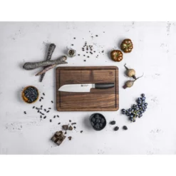 Hergestellt aus rostfreiem Spezialstahl, werden die optimal balancierten Messer von ZWILLING NOW S im harmonischen Ton-in-Ton-Design mit eisgehärteten FRIODUR Klingen versehen. Dieses Santokumesser aus der Serie Now S von ZWILLING ist ideal für Anfänger*innen geeignet, sodass auch Kochneulinge damit gut arbeiten können und sich auf ein Schneidwerkzeug für einfaches Arbeiten freuen können. Das Santoku wird in Japan traditionell wegen seiner vielfältigen Einsatzmöglichkeiten geschätzt: Es wird eingesetzt für das Zerteilen von Fleisch, Fisch und Gemüse. Dank dem ergonomischen Griff aus Kunststoff in der Farbe Schwarz liegt das Messer stets angenehm in der Hand.