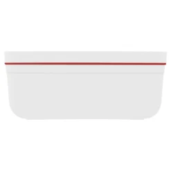 Die Lunchbox mit den trendigen roten Farbakzenten besteht aus BPA-freiem, bruchsicherem Kunststoff und ist unter Vakuum auslaufsicher, macht also in Arbeitstasche, Schultornister und Picknickkorb eine gute Figur. Dank dem Trenneinsatz kannst du die Bento Box in zwei Fächer unterteilen, so dass deine Vorräte sich nicht vermischen. Nach Gebrauch ist die spülmaschinengeeignete Snackbox schnell und einfach gereinigt.